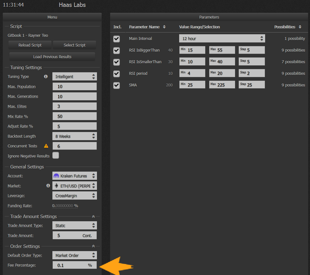 Haasonline has a feature called Haas Labs in which we can try various parameters and queue up multiple backtests at once! I will not go into the details of Haas Labs here, but it is a very nice way to quickly cross-check if other parameters for our Input blocks can lead to better or worse backtesting results.